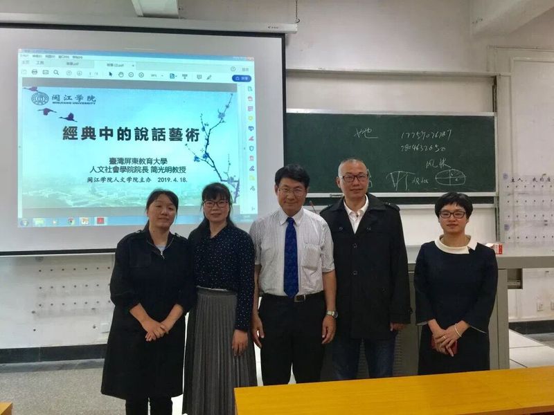 2019年4月16日,海棠书屋 邀请台湾省国立屏东大学中文系特聘教授 人文社会学院院长简光明教授于教学楼1B108教室召开以“经典的说话艺术”为主题的学术讲座。海棠书屋 副院长练暑生、蔡国妹教授、相关专业教师以及海棠书屋 部分同学到场聆听了讲座。