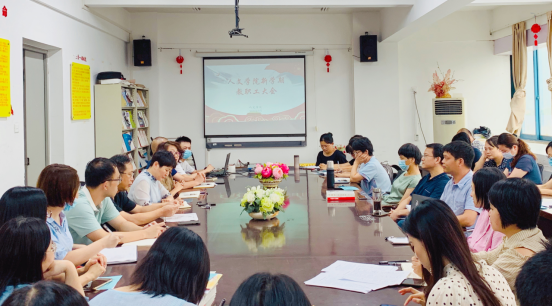 九月丹枫迎秋,返校学子归来,海棠书屋 全体教职工也整装待发,凝心聚力再启航。9月7日,学院在福万楼召开2020-2021学年新学期教职工大会,院长薛菁、院党委书记杨晓、副院长练暑生及海棠书屋 全体教职工参加了本次会议。