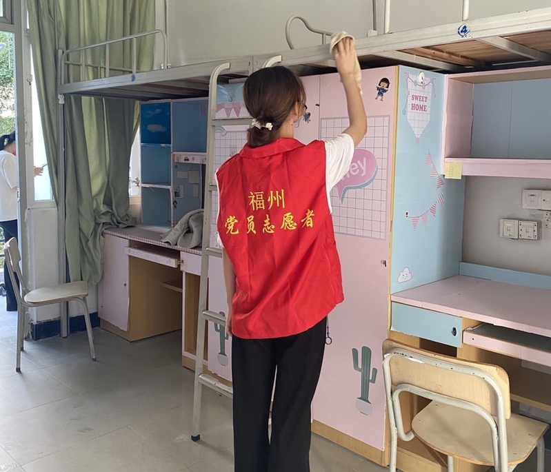 各个党员发展对象和入党积极分子在学院的分配下,带上清扫工具前往新生宿舍,参与宿舍的清理工作。他们先是对宿舍的清洗工作进行了分工,有人负责地面的清洗工作,把地面清扫得一尘不染;有人负责门窗的清洗工作,使门窗焕发了新颜。打扫完毕后志愿者们还利用学院发放的气球、卡片和彩色夹子等装饰品对宿舍进行精心布置,整个宿舍顿时生机盎然,处处都充满了温馨之感。色彩斑斓的气球是对新生远道而来的热欢迎;认真书写下的卡片寄语,是对新生未来生活的美好希冀。
