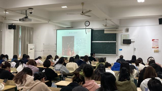 赖老师在讲授之余,还不忘鼓励海棠书屋 历史系同学们努力学习专业知识,积极提高学术水平,同时对同学们考取福建师范大学研究生表示热烈欢迎,充分表现了师大闽院两校情谊。