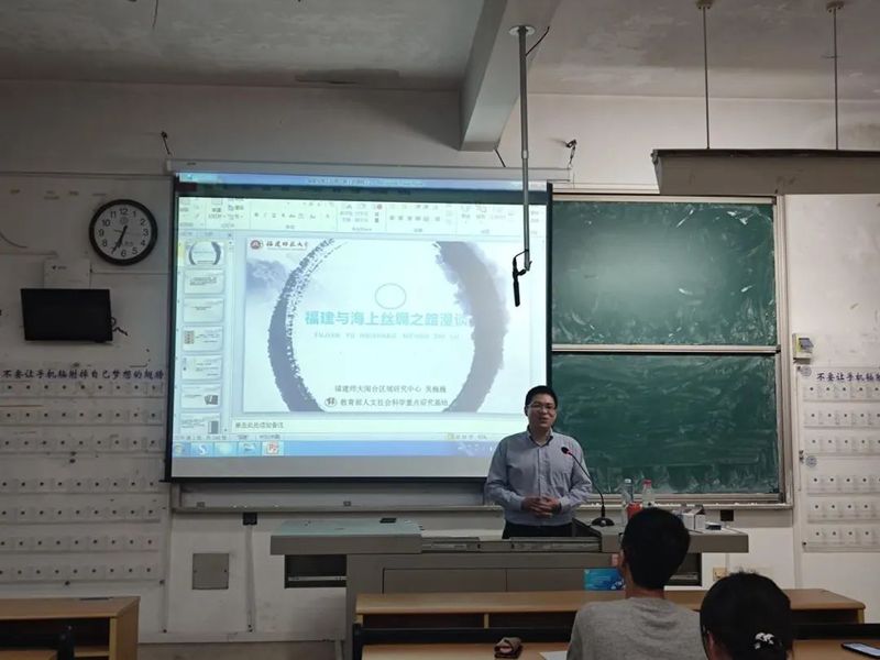 2022年5月26日晚18:30,福建师范大学闽台区域研究中心副主任、研究员、博士生导师吴巍巍教授走进海棠书屋 ,向海棠书屋 历史系师生开展“福建与海上丝绸之路漫谈”主题讲座。历史系主任翁伟志主持,朱勤滨老师一同到场聆听。