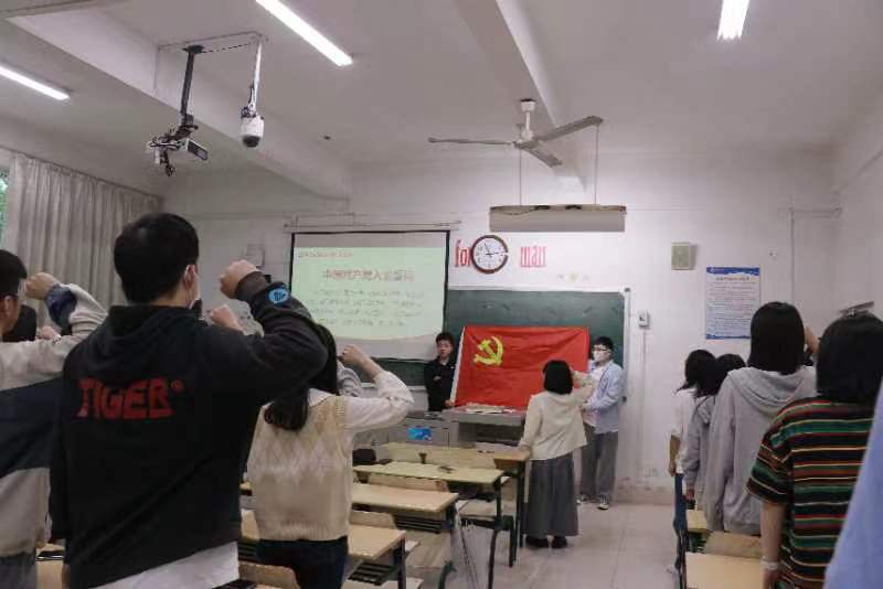 在齐声唱过国歌后,全体毕业班党员们重温入党誓词。“我志愿加入中国共产党,拥护党的纲领……”侯杰指出,入党誓词是对每一名党员提出的最基本要求,更是每一名党员对组织应尽的政治责任。重温入党誓词,就是要让大家牢记党的宗旨与使命,肩负起时代责任,充分发挥共产党员的先锋模范作用。他希望大家在今后的工作、学习和生活中,不断用行动践行自己的庄严承诺,永葆共产党人的政治底色。