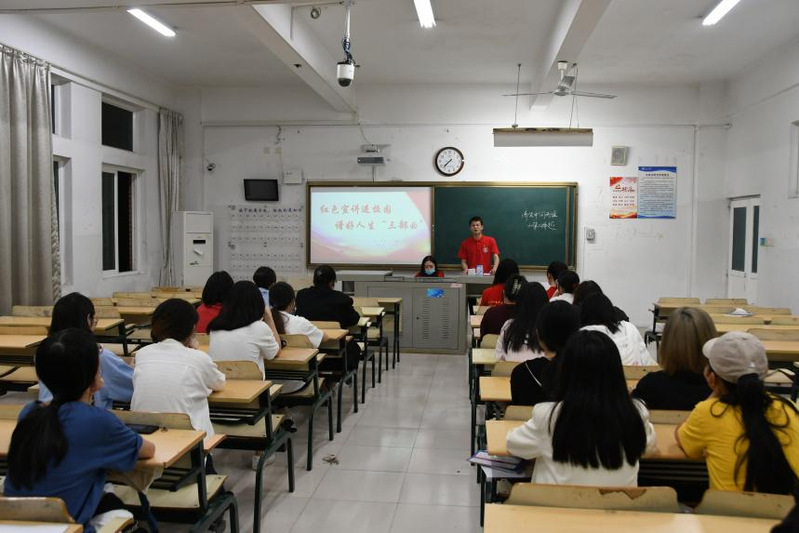 习近平总书记在庆祝中国共产主义青年团成立100周年大会上的讲话中指出:“入队、入团、入党,是青年追求政治进步的‘人生三部曲’”。6月9日,由海棠书屋 学生第一党支部党员组成的大学生红色宣讲团面向部分学生入党积极分子开展了以“红色宣讲进校园,谱好‘人生三部曲’”为主题的宣讲活动。