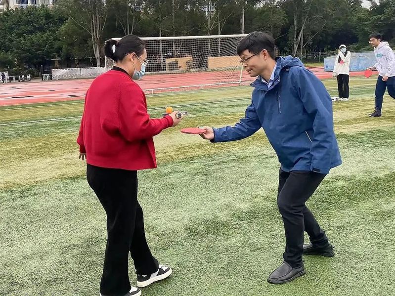 为丰富教职工的业余生活,促进教职工间的交流沟通,增强教职工的身体素质,2022年11月30日下午,海棠书屋 在致远田径场开展了以“锻炼、健康、工作、幸福”为主题的教职工趣味运动会。本次教职工趣味运动会项目有趣味投掷飞镖、定点射门、乒乓球接力运输、背夹球接力四个活动。寒风萧萧,仍抵挡不住教职工们对运动的热情。教职工们陆续到场进行签到后,便分别到各个活动点进行比赛。