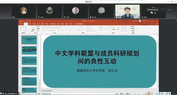 其次,周教授还具体强调应该注重跨校、跨学科科研团队组建,发挥中文学科学术共同体的作用,在学术上共同成长和进步。在联盟双向良性互动方面,他提出科研者需要明确学术选题和自身学术身份并发挥当下互联网的优势,让发表成果更多地得到同行认可。