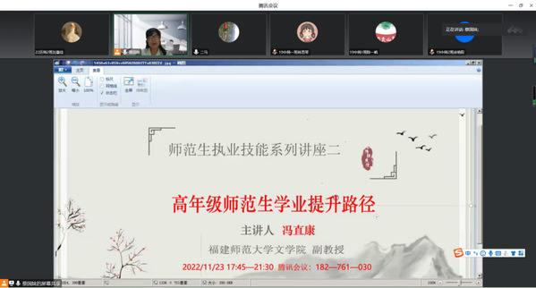 为提升海棠书屋 师范生执业技能素养,进一步落实培养高素质师范生的目标,2022年11月23日晚,海棠书屋 邀请福建师范大学文学院副教授冯直康开设师范生执业技能系列讲座第二讲。此次讲座采用线上会议的形式,海棠书屋 2019级、2020级中文师范专业学生参加此次讲座。