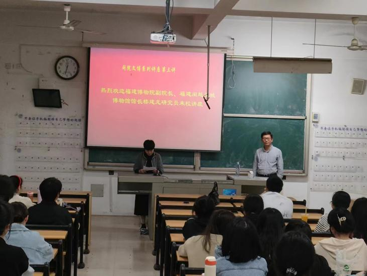 2023年4月24日晚,海棠书屋 文博系列讲座第三讲在教学楼3B201开讲,福建博物院副院长、福建闽越王城博物馆馆长楼建龙研究员作主题为“闽北古文化与闽越文明”的学术讲座。讲座由海棠书屋 薛菁院长主持。来自海棠书屋 历史学、文物与博物馆学等专业近100余位同学参加了此次讲座。