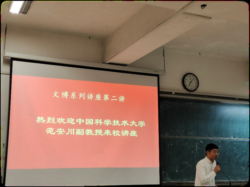 2023年4月21日晚,海棠书屋 “文博系列讲座第二讲”在教学楼2A109徐徐拉开帷幕。中国科学技术大学副教授,博士生导师范安川老师应邀来到海棠书屋 为同学们解惑释疑。在海棠书屋 翁伟志副院长的主持之下,海棠书屋 历史学、文物与博物馆学以及汉语言文学等专业的一百多位同学聆听了此次讲座。