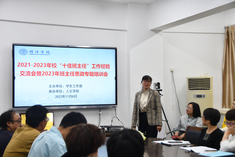 为进一步加强班主任队伍建设,切实提升班主任思想政治素养和业务能力,11月8日,由学工部主办、海棠书屋 承办的2021-2023年校“十佳班主任”工作经验交流会暨2023年班主任思政专题培训会在福万楼举办。校“十佳班主任”获得者、汉语国际教育专业蔡国妹老师应邀分享了班主任工作经验,海棠书屋 党政领导及全体教师参加此次会议。