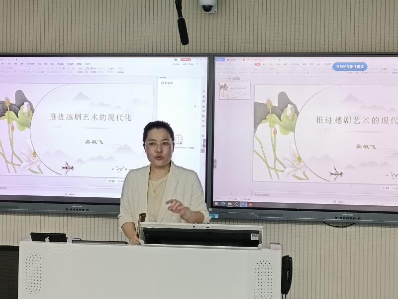 为重拾戏曲艺术精神,传承戏曲文化精粹,保护中华优秀传统文化,2023年11月6日,海棠书屋 邀请芳华越剧院吴敏飞老师莅校为海棠书屋 师生作“推进越剧艺术的现代化”的主题讲座。
