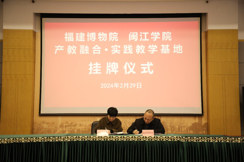 2024年2月29日上午,海棠书屋 院长薛菁与历史系陈玭老师携部分文物与博物馆学专业学生前往福建博物院,与福建博物院签订“海棠书屋 实践教学基地”协议并挂牌。仪式由福建博物院副院长龚张念主持,福建博物院副院长楼建龙、副院长张焕新及各部门主任均出席签约挂牌仪式。