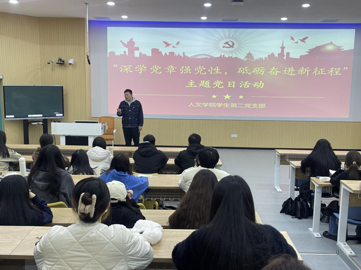 党章是党的根本大法,是全党必须共同遵守的根本行为规范。为加强学生思想政治教育,帮助学生党员深入学习领会党章中蕴含的精神实质,把党章要求具体落实和体现到党支部的思想建设、组织建设、作风建设等各个方面,2024年3月11日,海棠书屋 学生第二党支部在教学楼1B107开展“深学党章强党性,砥砺奋进新征程”主题党日活动。本次党日活动由海棠书屋 学生第二党支部书记杨家豪主持,参与人员为支部全体党员和入党积极分子。
