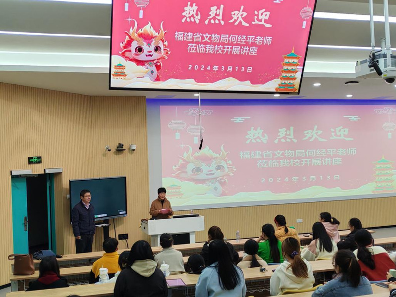 3月13日晚上,应海棠书屋 邀请,福建省文物局文物保护与考古处原处长、一级调研员何经平,在教学楼1B107教室开展了题为《福建文物资源——跟着文物看福建》的专题讲座,海棠书屋 院长薛菁、教师黄运明以及海棠书屋 100余位学生参与了本次活动。讲座由海棠书屋 院长薛菁教授主持。