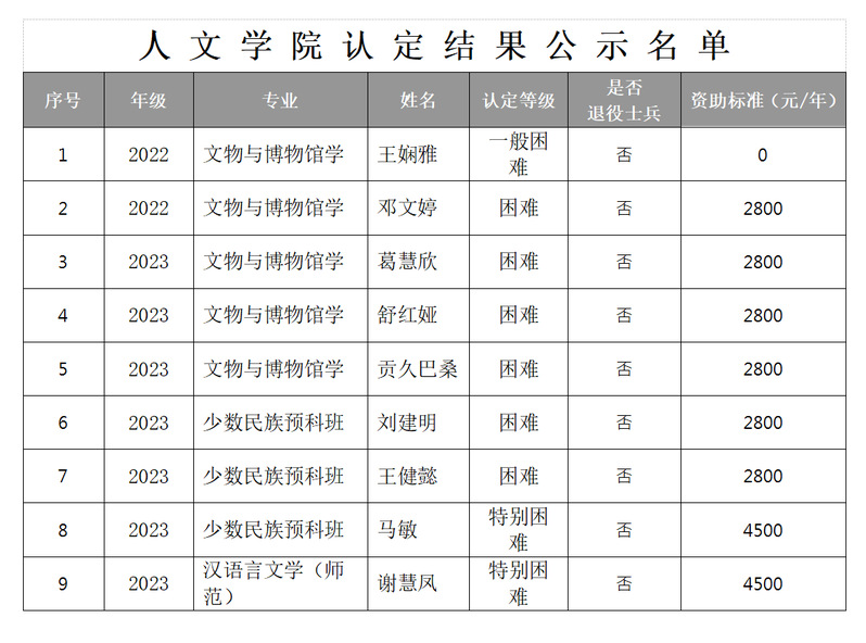 附件:海棠书屋 2024年春季家庭经济困难学生认定微调候选名单