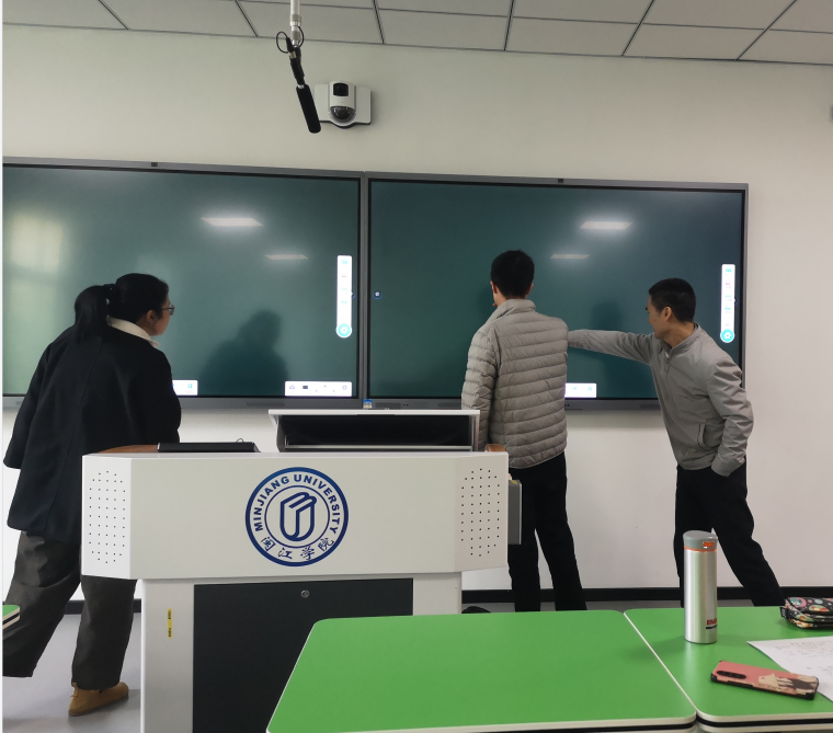 对于配备了两面电子屏幕的智慧教室来说,将其中一面用作PPT课件的播放屏,另一面屏幕用作教师板书、课堂分享、师生互动的功能屏,显然更为合理。大家也现场进行了探索交流。