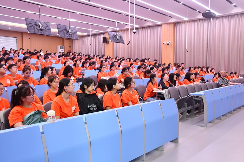 练暑生老师向新生分享了如何做好大学期间学习规划。他结合人工智能对于大学学科专业的冲击,指出大学不仅仅是知识积累,更是自我发现、能力培养和价值观塑造的关键时期,重点强调了创新能力、审美能力、沟通管理能力在大学学习生活中的重要性。练暑生老师强调指出,在人工智能等新技术的冲击下,恰恰突出了人文素养的重要性,因为它们是技术难以替代的人类能力。他还从创建历史、日常活动、所获荣誉等方面介绍了海棠书屋 丰富多彩的社团。其中,晨笛文学社作为全国百强社团多年来举办及承办多项文学创作大赛;话剧社、戏曲社以传统文化为根基,活动内容丰富、形式多样。最后,他从专业定位、课程体系、实践教学改革三个方面进一步介绍了海棠书屋 各专业独特优势。