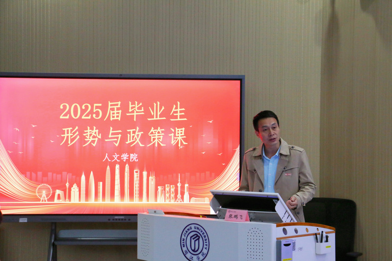 为深入学习贯彻习近平新时代中国特色社会主义思想,贯彻落实全国教育大会精神,认真落实上级和学校关于思想政治理论课教育教学工作部署要求,引导教育毕业生积极主动就业,11月20日,海棠书屋 党委副书记张鹏飞走进思政课堂,以“加快发展新质生产力,促进高质量充分就业”为题,为150余名2025届毕业生讲授了一堂生动的“形势与政策”课。