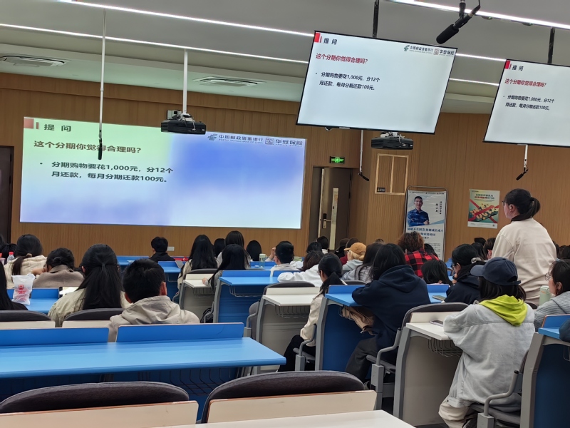 讲师还通过提问互动等方式带同学们了解如贷款利率、个人征信等相关金融知识,提醒同学们不要提前透支个人信用,养成良好价值观与消费观。同时,向同学们解读国家助学贷款等助学政策,增进同学们对国家政策的了解。