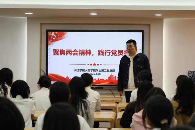 为深入学习贯彻全国两会精神,引导青年学生将个人理想融入国家发展大局,3 月 28 日下午,海棠书屋 学生第二党支部于立德社区艺文实训室以宿舍微讲堂形式,组织开展“聚焦两会精神,践行党员责任”主题党日活动。海棠书屋 教工第一党支部书记陈邑华老师、学生第二党支部书记杨家豪老师及支部成员共同参与。