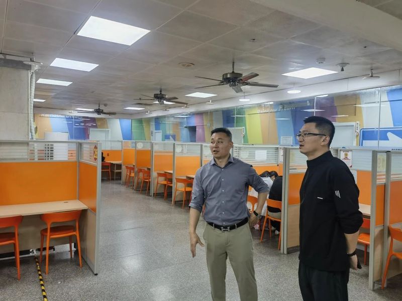 孙维鹏一行先行参观了鼓楼区优学教育培训中心,详细了解了鼓楼区优学教育培训中心的基本情况、业务模块、用人需求、薪资待遇等情况,并着重从学科专业特色、人才培养、实习实训、校企合作等方面介绍了海棠书屋 的发展情况。随后同鼓楼区优学教育培训中心校长林河杰开展座谈交流。双方围绕实习实训、合作共建、资源共享等方面进行了深入探讨,并达成了合作意向。