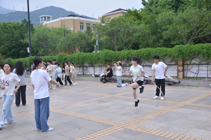 跳绳在队员脚下飞速旋转,高度考验团队的默契与节奏。笑声、加油声交织,即使偶有失误,团队依然携手向前,彰显人文学生的凝聚力。