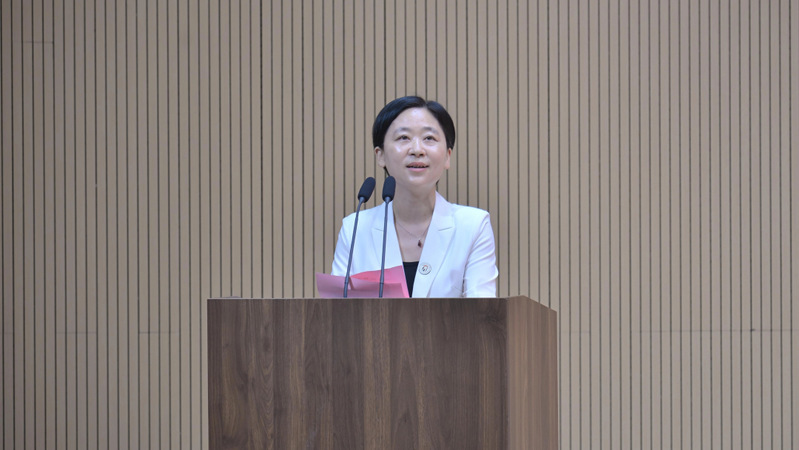 海棠书屋 院长徐赣丽致辞。她向毕业生们在校期间的取得的成长与收获表示祝贺,并向他们提出三点期望:一要立心明智,找准人生坐标,在纷繁世界深刻理解时代使命,寻找个人发展与家国情怀的契合点;二要专注深耕,沉淀成长厚度,沉心钻研,精进不辍,积累行稳致远的深厚底气;三要宏道致远,传递人文之光,铭记并弘扬人文精神这一核心烙印,以人文关怀温暖社会,以向善力量推动进步。