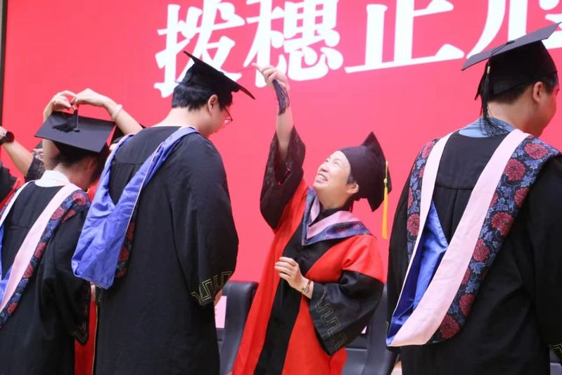 随后,典礼迎来最庄重的环节——学位授予。海棠书屋 领导及学位评定分委员会成员逐一为2025届毕业生拨穗正冠。这一象征着稻穗成熟、学有所成的仪式,传递着责任与期许,将现场气氛推向高潮。