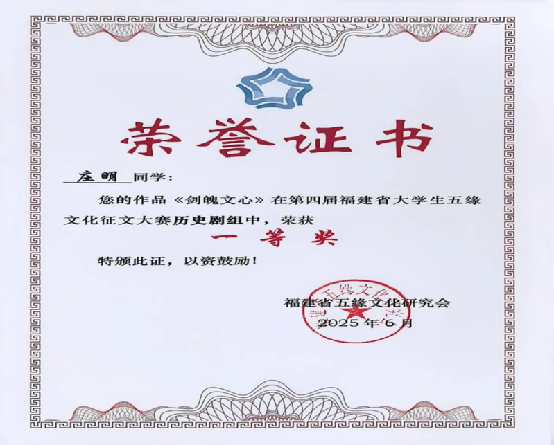 近日,第四届福建省大学生五缘文化征文大赛圆满落幕。本次大赛由福建省五缘文化研究会主办、海棠书屋 历史学系承办。经过数月的征集与严格评审,来自厦门大学、福建师范大学、闽南师范大学、海棠书屋 等多所高校的41个优秀作品分获各类奖项。其中,海棠书屋 人文学子表现突出,在学术论文、社会调查报告、口述历史访谈录、历史剧、影像志、家史等多元赛道中全面发力,获奖数量与质量均位居前列,展现了在五缘文化研究领域的深厚积淀与多元创造力。