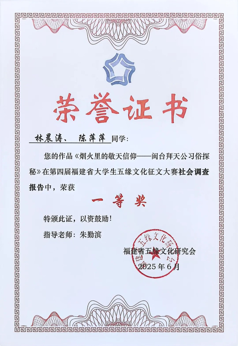 社会调查报告组一等奖:《烟火里的敬天信仰——闽台拜天公习俗探秘》