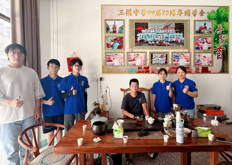 随着调研深入,我们前往了第二站,长乐罗源的竹里村和八井村。镜头记录下诸多珍贵画面:在整洁庄重的会议室里,队员们与村干部深入交流,探讨当地独特的节俗文化;在烈日炙烤的乡间小道上,他们步履不停,用真诚叩开一户户家门;在畲衣非遗传承人飞针走线的案台前,他们屏息凝神,似乎看到其中几百年、上千年光阴中的工匠精神,感受到传统技艺的时光脉动。在畲乡的两天里,我们深切感受到畲族文化独特的时空韵律。这个宁静祥和的古村落,仿佛定格在“慢时光”里,令人流连忘返。