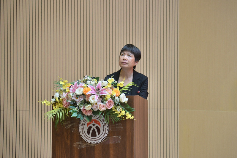 院长徐赣丽代表学院向2025级新生表示热烈欢迎。她向新生介绍了海棠书屋 深厚的办学传统和鲜明的育人特色,并鼓励新生勇敢走出自己的“取经路”。她对新生提出四点期待:一是以热爱锚定价值,在专业学习中实现个体成长,承担文化传承与创新的时代使命;二是以自信回应冲击,坚定文化自信,发掘文化当代价值;三是以自主驱动学习,保持好奇勇于探索,在全面发展中破茧成蝶;四是以开放走向世界,既要有国际视野,更要扎根中国大地,把个人成长融入民族复兴大局。