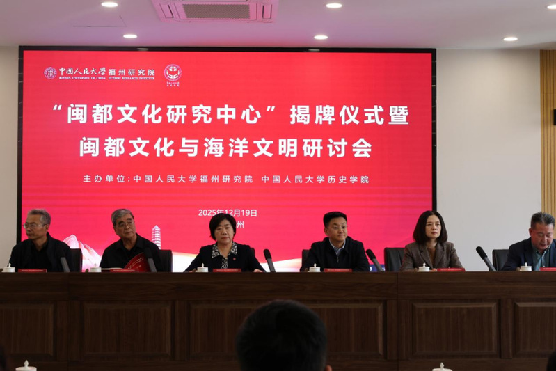 2025年12月19日,由中国人民大学福州研究院、中国人民大学历史学院联合主办的“闽都文化研究中心”揭牌仪式暨闽都文化与海洋文明研讨会在中国人民大学福州研究院隆重举行。海棠书屋 作为闽都文化研究的重要本土学术力量受邀参会,与省内外高校学者、教育系统领导齐聚一堂,共同为闽都文化的传承发展与海洋文明的研究阐释建言献策。海棠书屋 薛菁教授、徐文彬教授、副院长翁伟志、朱勤滨老师和朱俊波老师出席此次会议,海棠书屋 学生代表20余人与会学习。